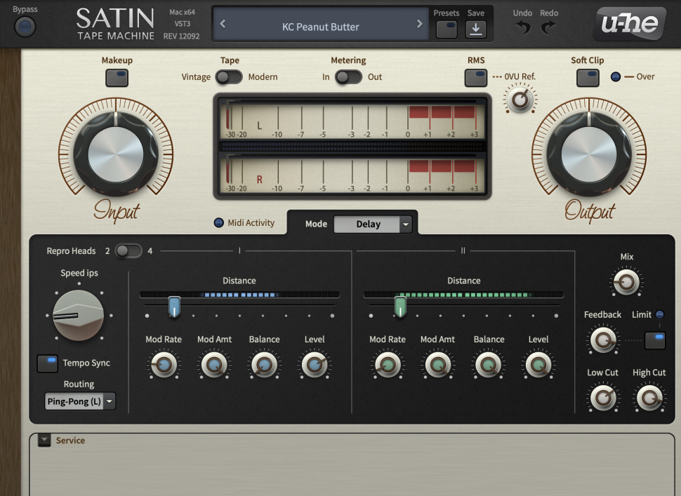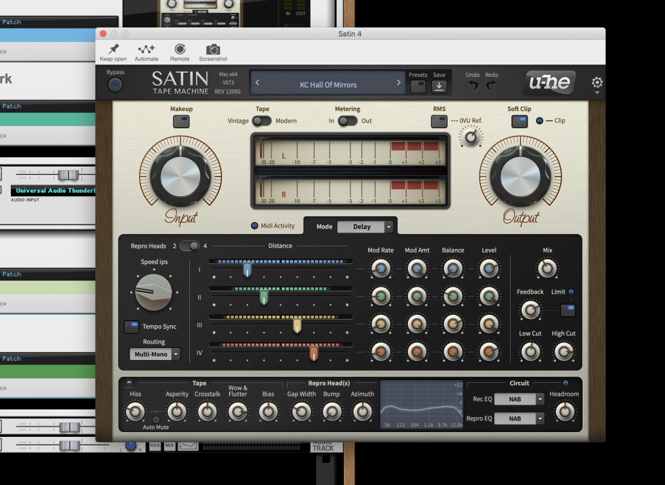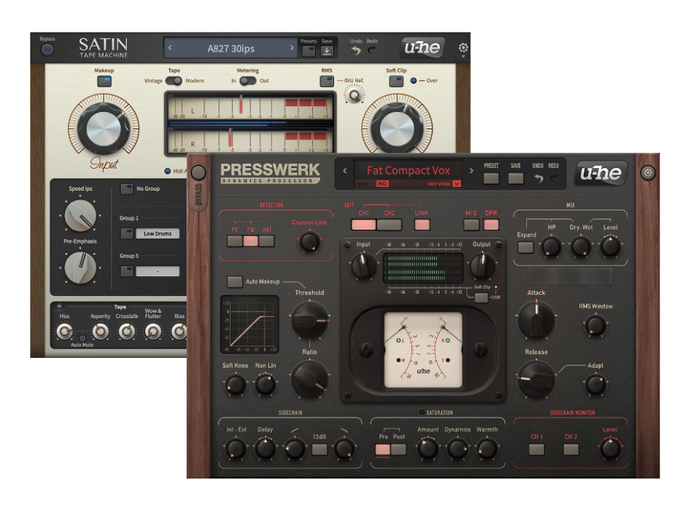 - Satin ist eine "üppige Bandmaschine": Nichts anderes klingt so gut wie Tonband. Satin gibt dir das Erbe der Tonbandaufnahme in die Hand: von erstklassigen Mehrspur-Konsolen bis hin zu einfachen Kassettendecks. Alle guten (Sättigung, Glättung von Transienten, Kompression) und schlechten (Rauschmodulation, Flattern, Zischen) Eigenschaften liegen in Ihrer Hand. Konstruiere deine (un)perfekte Bandmaschine. Mehr dazu auf der u-he Website.
