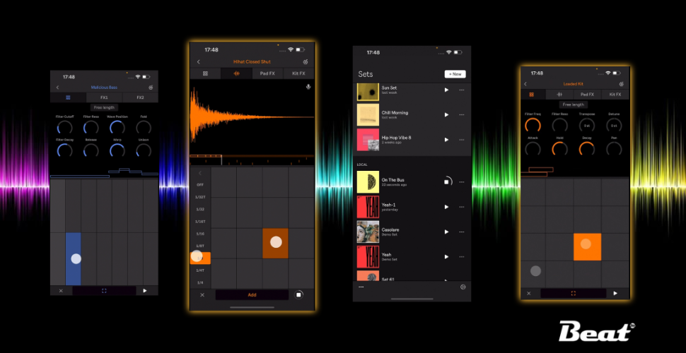 Als Basis-Ausstattung sind in der App bereits 56 Drum-Kits, 261 Synth-Sounds und 36 Sampler-Instrumente mitgeliefert. Anhand einer 4x4 großen Pad-Matrix lassen sich die Drums einprogrammieren. Die Rhythmen lassen sich layern und via Note Repeat-Funktion wiederholen. Auch Harmonien lassen sich mit Overdubbing hinzufügen und in einem Piano Roll einspielen. Die Drum- und Synthsound lassen sich dann mit Effekten anreichern. Anstatt der vorgefertigten Klänge können über das Mikrofon auch eigene Klänge aufgenommen werden. Über das Grid-Layout, das vielen Ableton-Anwendern als Session-Ansicht bekannt vorkomme dürfte, lassen sich Clips und Songstrukturen erarbeiten und zugleich als Audio-Files exportieren.