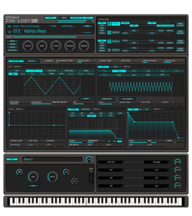 Mit dem Roland ZENOLOGY Pro Software-Synthesizer profitieren Abonnenten von Roland Cloud Pro und Ultimate von der vollen Leistungsfähigkeit des ZEN-Core Synthese-Systems und können tief in die Möglichkeiten des individuellen Sounddesigns eintauchen. ZENOLOGY Pro übernimmt die herausragende Sound-Qualität von ZENOLOGY, erweitert um eine umfassende Editing-Bedienoberfläche für neue, inspirierende Sounds.