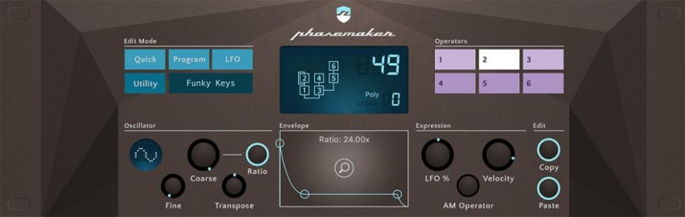 Ob für raue Leads oder reichhaltige Bässe, klirrenden Glockensounds oder pulsierende Drohnen, Phasenmaker will das volle FM-Repertoire ausschöpfen können. In die App kommen sechs Operatoren zum Einsatz, laut Hersteller eine erstmalige Gelegenheit bei einem iPad-Synth. Hinzu kommen noch zwölf Oszillatoren und 36-Stimmen Polyphonie, 42 FM-Algorithmen (darunter Layouts des DX7) und mehrere Werks-Presets. Ferner sind Vintage-angehauchte Chorus- und Reverb-Effekte an Bord, um klassiche Ambience-Effekte zu erzielen.