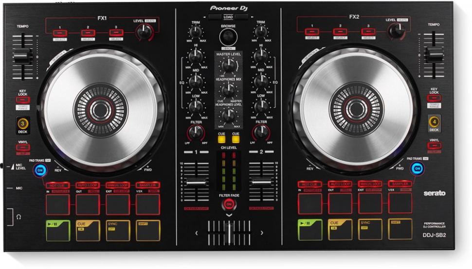 Die grundlegende Ausstattung ist gleich geblieben: Plug & Play-Betrieb und Stromspeisung via USB, volle MIDI-Unterstützung und eine integrierte Soundkarte. Der Master Output wird als RCA bereitgestellt, ein Kopfhörer-Ausgang dient dem Monitoring und der Mikrofon-Eingang (3,5mm) ermöglicht spontane DJ-Ansagen. Des weiteren bietet der DDJ-SB2 berührungsempfindliche Alu-Jogwheels, kombinierte Filter (HP, TP) und eine Filter-Fade-Funktion pro Kanal sowie Performance-Pads, um Hot Cue, Auto Loop, Manual Loop und Sampler zu triggern. Zudem gibt s eine dedizierte FX-Kontrolle für Serato DJ, die Intro-Variante ist im Lieferumfang enthalten.