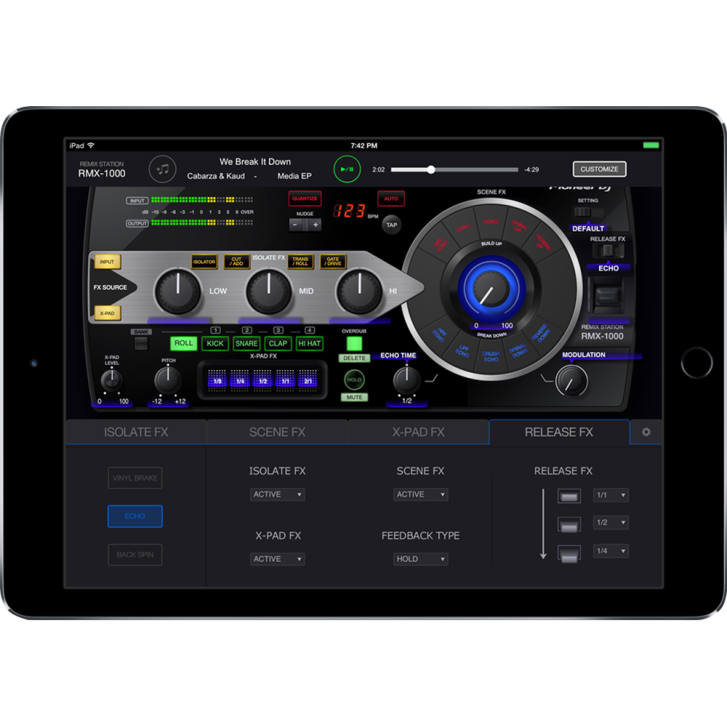 Erstmalig in 2012 veröffentlicht, brachte das Effekt-Gerät RMX-1000 eine frische FX-Brise in die Kanzel. Zudem wurde die Hardware mit einer Plug-in-Version ausgeliefert, um auch die Produzenten gleichermaßen zu unterstützen. Nun liefert die neue App-Emulation berührungsempfindliche Kontroll-Möglichkeiten und lässt sich dank IAA- und Audiobus-Support sowohl ins iOS-Studio als auch in den Live-Einsatz einbinden. Ganz wie das Original, bietet die App-Version vier Effekt-Sektionen, die sich nicht nur kombinieren sondern auch beliebig anpassen lassen. Der Bereich X-Pad FX ist den Loops und Stottereffekten gewidmet während die Isolate FX-Sektion mit einem Equalizer Rhythmen und Klangfarben bearbeitet. Scene FX bietet zehn kombinierbare Effekt-Algorithmen, mit dem Release FX kann der DJ zum trockenen Signal zurückkehren.