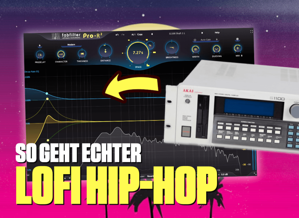 Das größte Geheimnis hinter dem Erfolgsrezept von LoFi ist neben den verspielten, anti-hektischen Melodien und Beats natürlich das Retro-Feeling mit Low-Fidelity-Elementen wie dem typischen Knistern von Vinyl, 12-bit Drums oder niedrigen Sample-Raten bei verwendeten Sounds. Alles kein Problem und zum Abrunden nutzen wir sogar noch ein LoFi-Reverb!