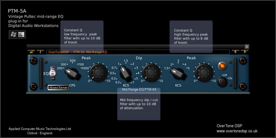 OverTone DSP PTM-5A für Windows und Mac ist für 35 britischen Pfund erhältlich. Der Hersteller hat mehrere virtuelle Equalizer und Kanalzüge zu bieten, unter anderem den weiteren Pultec-Klon EQP-1A. Sicherlich ist das nicht der erste Versuch, den gerühmten Klang der Pultec-Boliden zu emulieren, wir verweisen auf kostspielige Konkurrenten von Universal Audio und Waves sowie auf die kostenlosen Varianten Program EQ oder Ignite PTEq-X. Eine freie Demo-Version zum Ausprobieren und Vergleichen steht zur Verfügung.