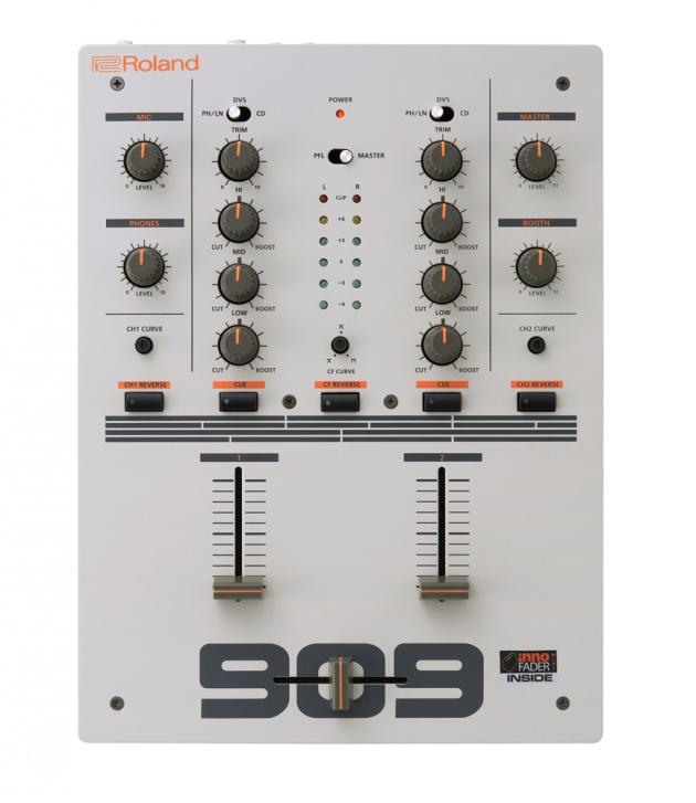 DJ-99 ist ein 2-kanaliger DJ Mixer im "909 Celebration"-Design. Jeder Eingang ist mit einem 3-Band-Equalizer und Gain-Regler ausgestattet, Lautstärke-Kontrolle für Master und Booth, Mikrofon und Kopfhörer sind inklusive. Beide Kanäle lassen sich in Phono- oder Line-Eingänge umschalten, ferner sind dedizierte DVS-Ausgänge vorhanden. Neben den Linefadern setzt Roland auch einen mini innoFADER als Crossfader ein.