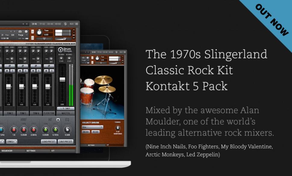 Drum Drops veröffentlicht mit 1970s Slingerland Classic Rock Kit ein virtuelles Schlagzeug, das die Klänge des gleichnamigen Schlagzeugherstellers bieten möchte. Zudem trägt dieses Sample-basierte Instrument für Kontakt die Mix-Handschrift des Produzenten Alan Moulder.