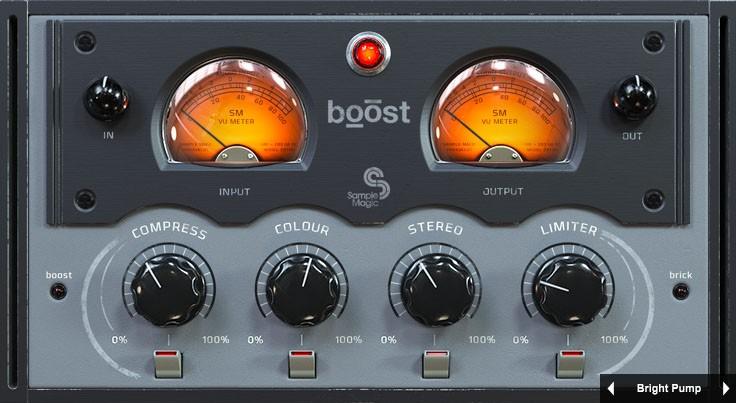 Um fertige Mixe oder einzelne Spuren konkurrenzfähig, laut und dennoch wohlklingend zu gestalten, setzt Boost vier ''einfache aber intelligente'' Kontrollen ein. Am Anfang der Signalkette steht der mehrbändige Kompressor, der mit einem einzelnen ''Compress''-Regler sowie etlichen Presets und Makros seine Arbeit verrichtet. Anschließend folgt der ''Colour''-Parameter, der sich als ein dynamischer 4-Band-Equalizer entpuppt. Des weiteren kümmert sich die ''Stereo''-Instanz um das Stereofeld inklusive Breite und Links-Rechts-Verarbeitung. Der Brickwall-Limiter sorgt für den Schliff und rundet das Bild ab.
