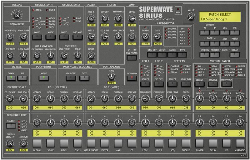 SuperWave, die Software-Schmiede aus Großbritannien hat die Modellierung der virtuell-analogen Synthesizer als sein Spezial-Gebiet erklärt. Mit Sirius bringt der Hersteller ein frisches Synthesizer-Plug-in auf den Markt, das mit einem bewährten Moog-Filter und der nostalgischen ''Wärme'' die Windows-Musiker für sich gewinnen will.