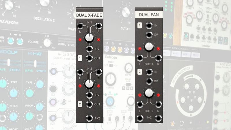 Softubes Update für sein virtuelles Modular-System bringt neben den Feinarbeiten für Windows 10 zwei neue Module: Dual X-Fade und Dual Pan. Wie die Namen bereits verraten, sind beide Erweiterungen 2-Kanal-Module, die sich mit CV-Steuerung ums Crossfade und Panning kümmern.