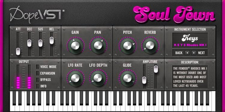 Soul Town beherbergt zwanzig klassische Instrumente und Effekte, die den Vibe der 60er-Jahre nachbilden sollen. Die Abteilung Tasteninstrumente bietet die Klänge von Fender Rhodes, Hohner Clavinet und Hammond-Orgel B3 während die Streicher-Abteilung ein Streicher-Orchester nachbildet. Ferner werden vintage Basslines versprochen und ein Bläser-Bereich. Für jedes Instrument sind Akkordfolgen und Solos mit bis zu fünf Dynamikstufen zu finden. Ebenfalls vorhanden sind verschiedene Spielmodi (Poly, Mono, Legato) und Kontrollinstanzen für Tonhöhe, Panorama, Glide und Gain. Ferner ist ein analog angehauchter Reverb an Bord und die Möglichkeit der Soundformung durch einen LFO und eine ADSR-Hüllkurve.