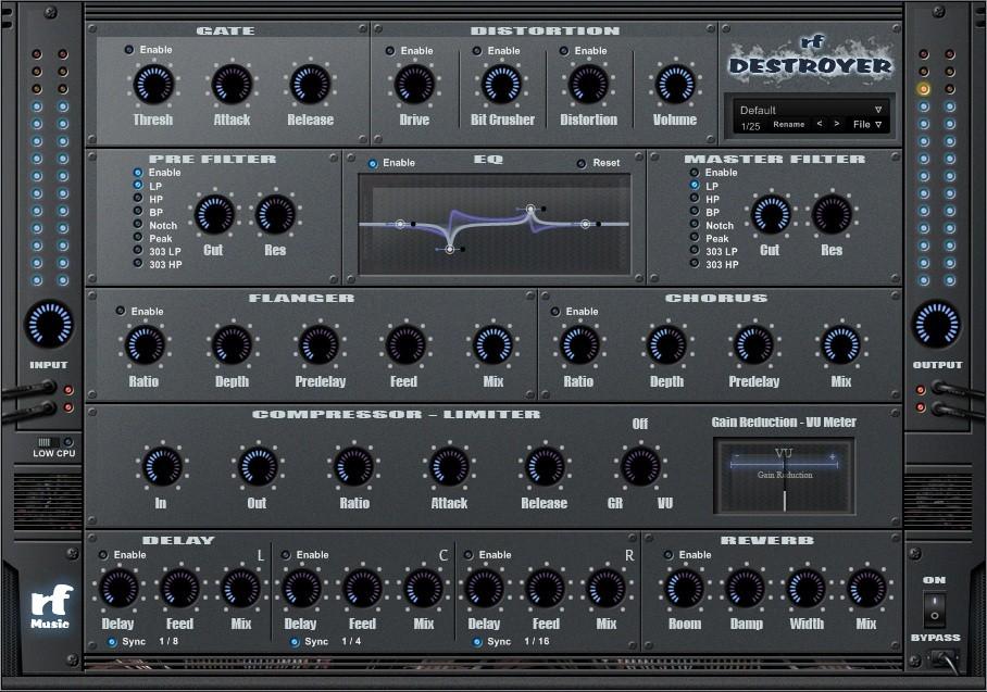 rf Destroyer bietet interessante Effekte für subtiles Sound-Design bis hin zu radikalen Veränderungen des Klanges. Positiv hervorzuheben ist der schnelle Zugriff, da alle Elemente auf einer einzigen Seite platziert sind, sowie die Entlastung des virtuellen Effekt-Racks durch die Kombination der Effekte.