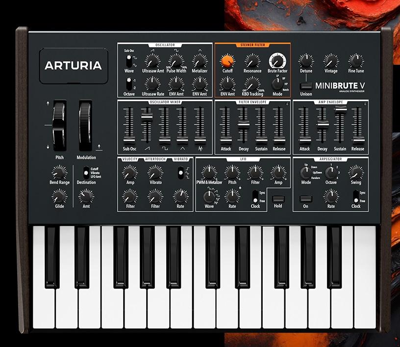 Während der Synthesizer MiniBrute schon bereits vor 12 Jahren für reichlich Furore in der Hardware-Welt sorgte, folgt nun mit dem MiniBrute V eine erweiterte Form als Plug-in. Der Klangerzeuger für Sounddesigner ist nun achtfach polyphon spielbar und verfügt über ein erweitertes Effektrack. Der Multi-Wellenform Oszillator bekommt nun Unterstützung von einem Sub-Oszillator. Hinzu kommen Mono- und Unisono-Modi.