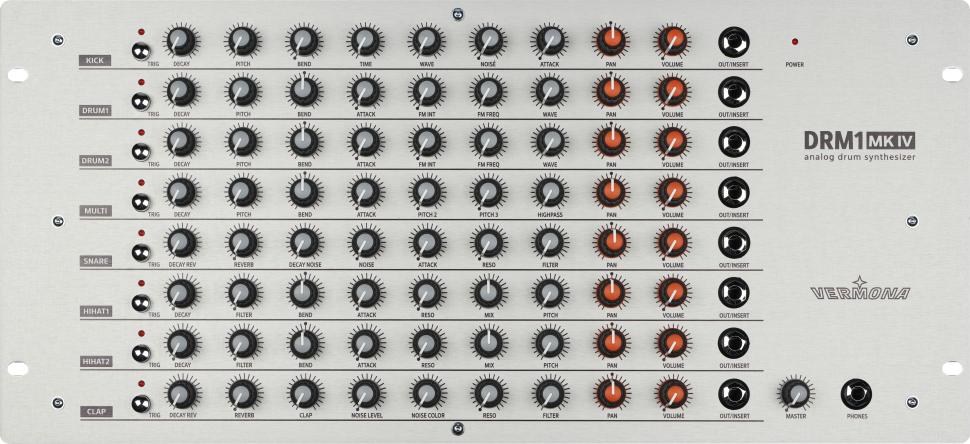 Schon 25 Jahre auf dem Buckel und dennoch genauso inspirierend wie am ersten Tag feiert Vermona mit dem Drum- und Percussionsynthesizer DRM1 ein Jubiläum und stellt zugleich die vierte Generation mit dem DRM1 MKIV vor. Wie gehabt kann man sich auf acht Instrumentenkanäle mit je sieben Klangreglern zuzüglich Volume und Panorama und Ausgangsbuchse freuen.