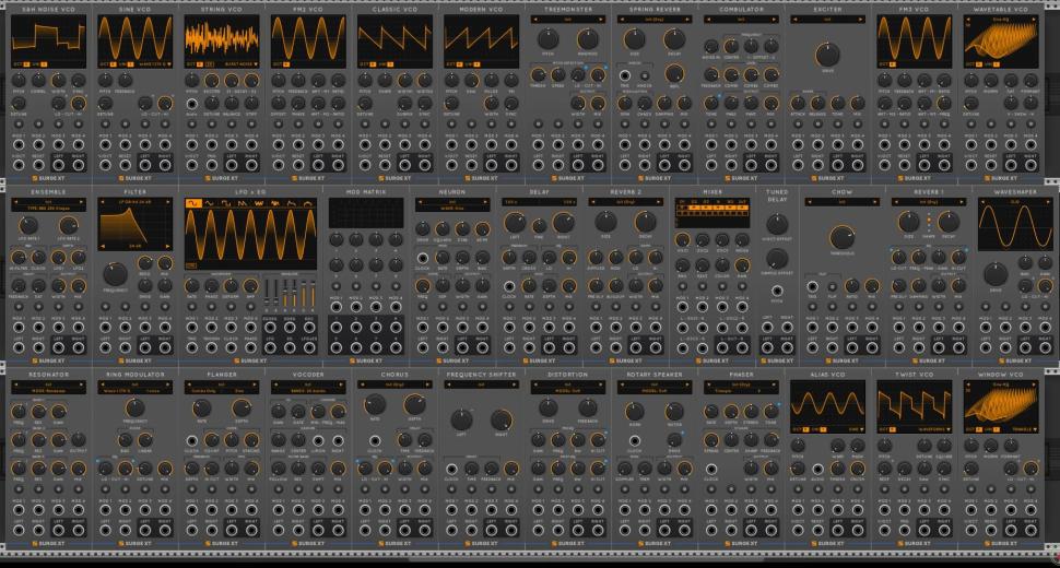 Dazu gibt es 20 digitale Effekt-Module, darunter ein Filter mit 33 Filtertypen, ein Multimode-Waveshaper und ein Multimode-LFO/Sequenzer. In der modularen Umgebung sind diese sogar noch flexibler. Im Gegensatz zum herkömmlichen Surge XT, gibt es noch zusätzliche neue Module, darunter eine vierfache AD-Hüllkurve, ein vierfacher LFO und ein zweifacher Generator. Neu ist auch das Click-to-Assign-Matrixsystem, Zudem dienen die vier CV-Mod-Eingänge dazu, dass eine einzige Signalquelle beliebig viele Regler vom Modul beeinflussen kann.