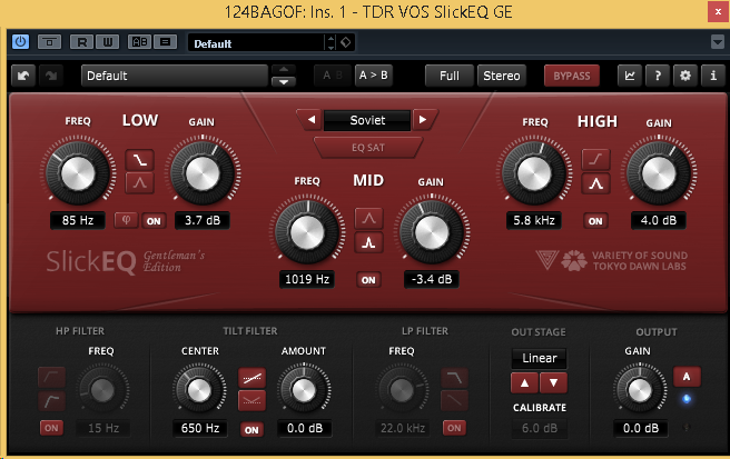 Der Mixing- und Mastering-Equalizer SlickEQ GE entstand in Zusammenarbeit der Entwickler Tokyo Dawn Records und Variety Of Sound. Das Kernstück bilden drei semi-parametrische Equalizer mit jeweils zwei Optionen: Bässe und Höhen sind zwischen Glocken- und Kuhschwanzfilter umschaltbar, das Mittenband bietet wahlweise ein engeres Glockenmodell. Die Frequenzkurve wird auf Knopfdruck visuell dargestellt. Ein kleines Manko ist, dass sich der Q-Faktor nicht individuell einstellen lässt. Angesichts der Auswahl von fünf ausgezeichnet klingenden Filtermodellen fällt dies jedoch kaum ins Gewicht. In Verbindung mit sechs verschiedenen Ausgangsstufen offeriert SlickEQ so eine Vielzahl verschiedener Klangcharakteristika. Das Tiefenband hat zudem eine Phi-Option, die den Bassbereich mit Allpassfiltern abkoppelt und verzögert und z. B. für einen weicheren Attack bei Bassdrums sorgt.
