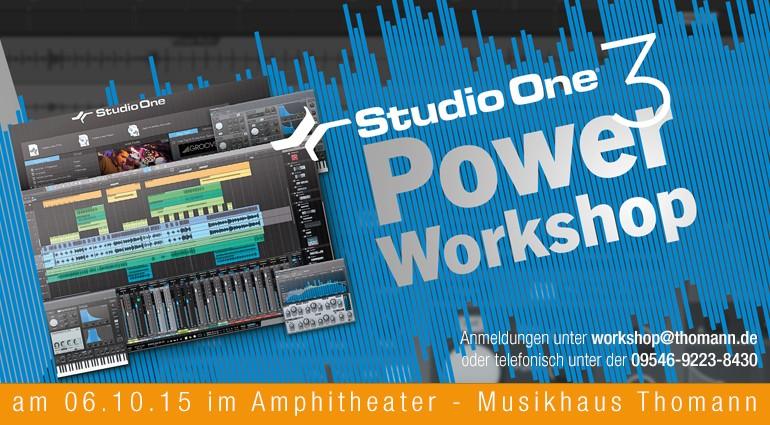 Thomann Power-Workshop Studio One 3 ist kostenlos und findet am 6. Oktober um 19:00 Uhr im Thomann-Amphitheater in Treppendorf statt. Eine Anmeldung unter workshop@thomann.de oder unter 09546/92238430 wird vorausgesetzt. Der Oktober steht bei Thomann im Zeichen zahlreicher Events, über weitere Bildungs-Angebote werden wir berichten.