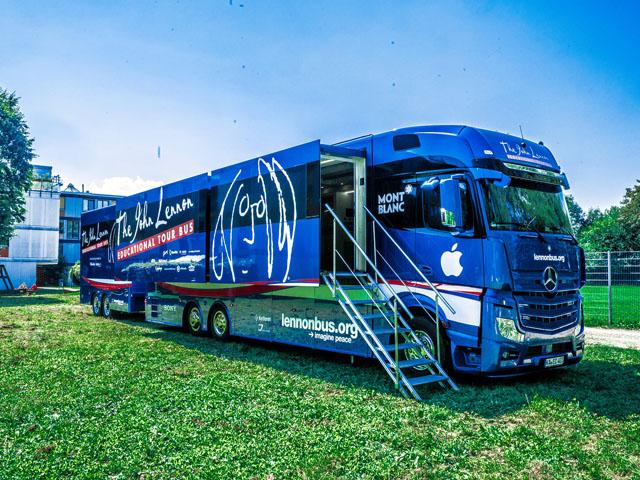 Die Ausstattung könnte hochwertiger und moderner kaum sein: Hochleistungsrechner von Apple, modernste Software, Gitarren von Gibson, Drums, ein Piano und sogar eine Sattelitenschüssel für Live-Übertragungen ist an Bord. Die riesige Dachterrasse des Busses steht jederzeit für Live-Performances bereit. All das sollen interessierte Jugendliche in Deutschland über Wochen kostenlos nutzen können. Die genauen Stationen der Tour werden in Kürze bekannt gegeben. Eine der ersten Stationen ist das Haus der Kultur in Bonn. Auch in Berlin wird der Bus im Oktober Halt machen. Hier wird es auch einen offiziellen Pressetermin mit Yoko Ono geben. Schulen und kreative Einrichtungen sowie Veranstaltungen und Festivals werden die Anlaufstellen für den John Lennon Educational Tour Bus sein.