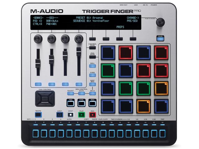 Über Mackie Control, HUI oder die Software Arsenal integriert sich der Trigger Finger Pro in aktuelle DAWs. Die Arsenal Software dient zudem als VST Host, etwa für Software-basierte Live Performances. Automatisches Mapping erleichtert die Zuordnung häufig genutzter Parameter. Neben AIR Drums und dem VA Synthesizer Hybrid 3 wird Trigger Finger Pro mit einer 8 GB großen Soundlibrary ausgeliefert. Diese enthält Loops und One Shots u.a. von Black Anomaly und Prime Loops, sowie exklusive Artist Launch Packs des Labels Toolroom Records.