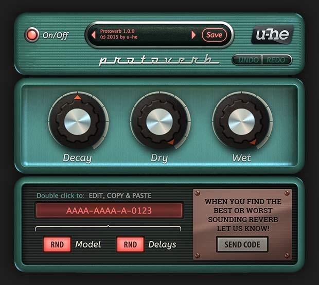 Protoverb zeigt eine aufgeräumte Benutzeroberfläche, die als Steuerung separate Dry-, Wet- und Decay-Regler bietet. Das Experimentelle an dem Plug-in ist sein Textfeld, wo die Nutzer beliebige Codes (Text und Zahlen) eintragen können und eben nicht auf einen Preset-Browser angewiesen sind. Im Hintergrund arbeiten Mechanismen, die aufgrund der zufälligen Eingaben Delay-Anzahl und Länge sowie die Raumgröße und Form berechnen, generieren und erklingen lassen. Die Experimentierfreudigen werden gebeten, gelungenen Codes einzuschicken und mit anderen Nutzern zu teilen. So sollen nach und nach Presets gemeinsam ausgetüftelt und gesammelt werden - der Ideenreichtum wird im Januar belohnt.
