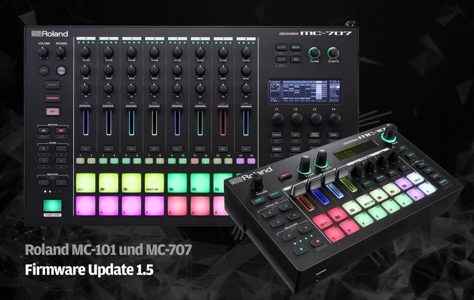 Das Firmware Update 1.5 für die MC-101 und MC-707 ist kostenlos auf der Webseite von Roland verfügbar. Wir sind schon gespannt auf die kommenden Features!