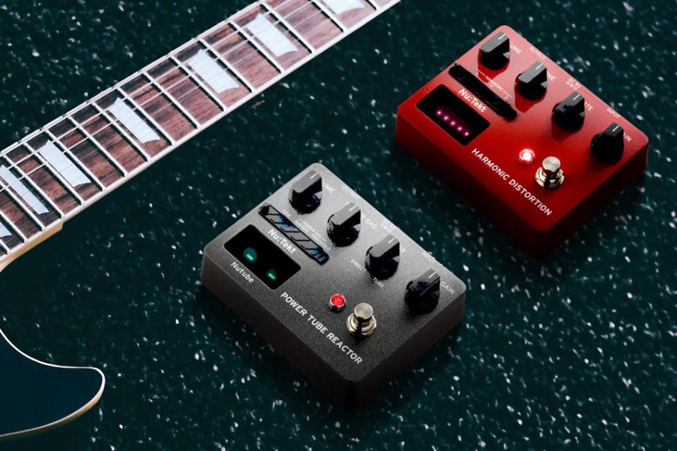 Hinzu kommen die drei Parameter Volume, Tone, Gate und Gain. Hinter dem Nu:Tekt TR-S versteckt sich ein Effektpedal mit Verzerrer, das die Reaktionsfähigkeit von klassischen Röhrenverstärkern emuliert. An diesem Effekt sind die Regler Volume, Power Sag, Mix und Tube Gain zwecks Kompression und Sound vorhanden, sowie die drei Einstellungsoptionen Tone, Sustain und Threshold. Intern ist auch eine beleuchtete Röhre zu sehen, die herkömmlichen Röhren aber klanglich nahe kommen soll.