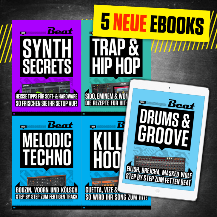 Mit einer 5-teiligen Creative Producer-eBook-Sammlung geben wir passende Patentrezepte auf mehr als 70 Seiten für erfolgreiche Songs an die Hand, die Ihre Produktionen professionalisieren.