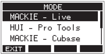 Für die DAW-Fernsteuerung muss Model 12 in den passenden Modus versetzt werden. Drücken Sie den Menu-Button und scrollen Sie mit dem Multi-Jog-Encoder nach unten, bis DAW CONTROLLER erscheint. Drücken Sie den Push-Encoder, um in das Auswahlmenü zu kommen. Wählen Sie das für Ihre DAW passende Protokoll, in unserem Fall MACKIE – Live.