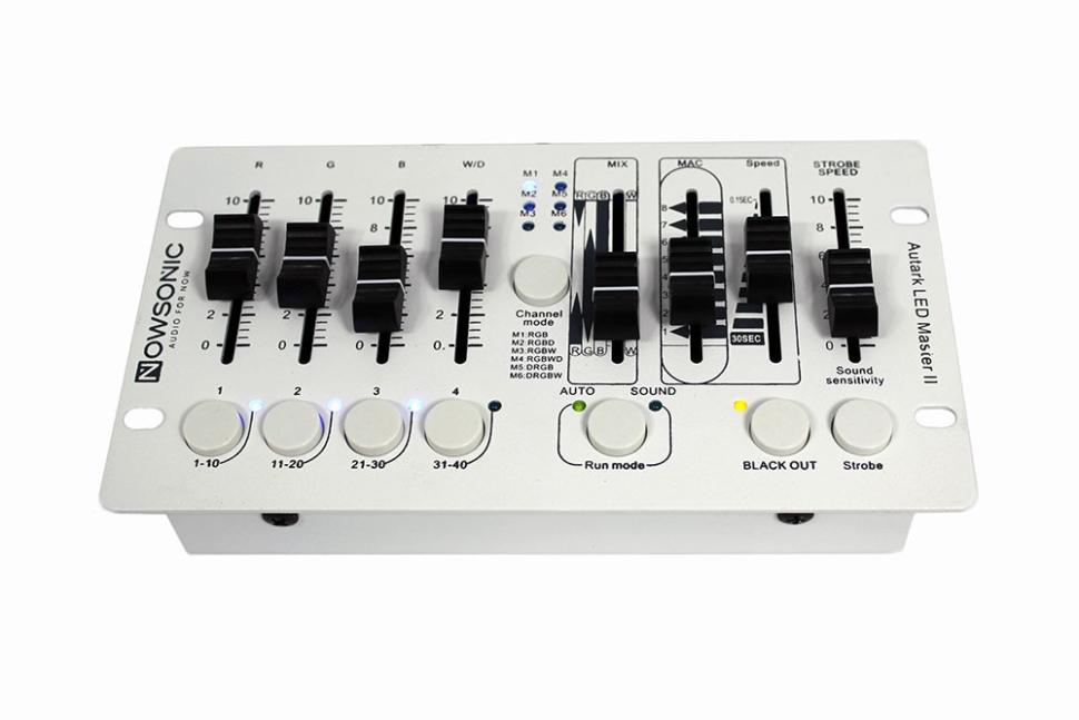 Nowsonic bietet in seiner Autark-Serie, der Komplettlösung für die Beleuchtungsaufgaben, einen kompakten DMX-Controller LED Master II, der dank des DMX 512 Protokolls die Steuerung beliebiger Fluter-Produkte und LED-Par-Kannen versichert.