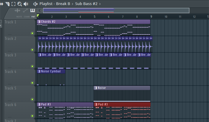 Die Chorus-Variation ist geschafft, doch nun möchten wir den Break-Part völlig neu gestalten. Aus diesem Grund erzeugen wir ein leeres Arrangement und nennen es Break B. Aus den bisher im Song erstellten Clips und Pattern kreieren wir uns einen neuen Part, der sich gänzlich von der alten Version unterscheidet.