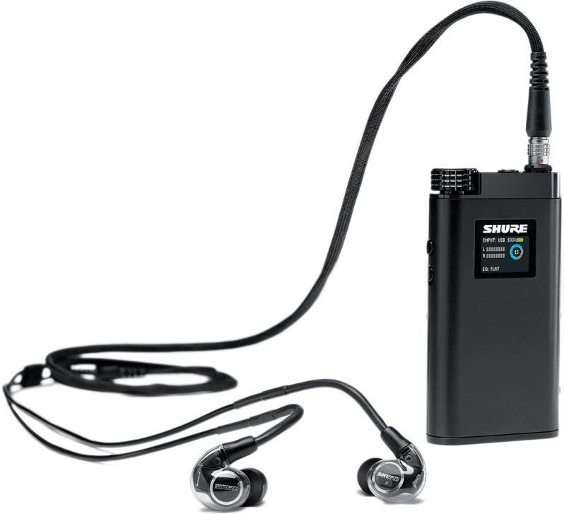 Die präzise akustische Feinzeichnung des Shure KSE1500 begründet eine neue Maxime für anspruchsvollsten mobilen Hörgenuss, da weltexklusiv elektrostatische Sound Isolating Ohrhörer mit einem abgestimmten Verstärker für mobile Player zum Einsatz kommen. Das System verarbeitet digitale Audiosignale via MicroUSB sowie analoge Signale mittels 3,5 mm Klinke. Der integrierte Digital-Analog-Wandler (DAC) bietet eine Samplerate von bis zu 24 bit/96 kHz sowie einen parametrischen 4-Band-Equalizer. Der KSE1500 ist kompatibel mit Mac, PC, iOS und Android-Geräten. Der integrierte Akku ist per USB aufladbar.