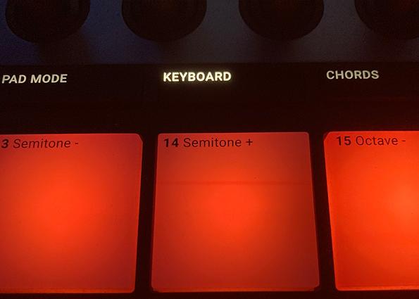 In unserem Song kam ein Sitar-Klang für die Melodie zum Einsatz. Die Akkorde wurden über einen Pad-Sound und ein Piano realisiert. Im sogenannten Scale-Mode können Sie problemlos verschiedene Skalen verwenden, um ihre Melodien interessanter zu gestalten. Klicken Sie zuerst auf den Keyboard-Reiter oberhalb der Drum-Pads. Der linke Bildschirm zeigt nun zwei Einstellmöglichkeiten an.