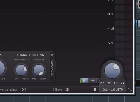 Als nächstes deaktivieren wir bei dem ersten Limiter und aktivieren bei dem zweiten Limiter den True-Peak-Modus. Zudem setzten wir das Output Level beim ersten Limiter auf 0dB und beim zweiten Limiter auf -1dBTP. Somit stellen wir sicher, dass nichts über -1dBTP die DAW verlässt und keine Verzerrungen bei der digital-analog Wandlung auftreten können.
