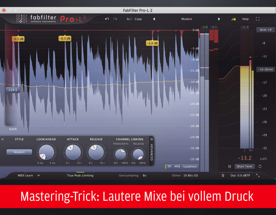 Der Limiter ist das Standardwerkzeug um wilde Transienten unter Kontrolle zu bekommen und Lautheit zu generieren. Dabei besteht die Kunst darin, immer den besten Kompromiss zwischen der Lautheit und dem Dynamikverlust zu finden. Wir zeigen Ihnen, wie Sie durch zwei Limiter in Reihe geschaltet, ein viel angenehmeres und weiches Klangbild bekommen.