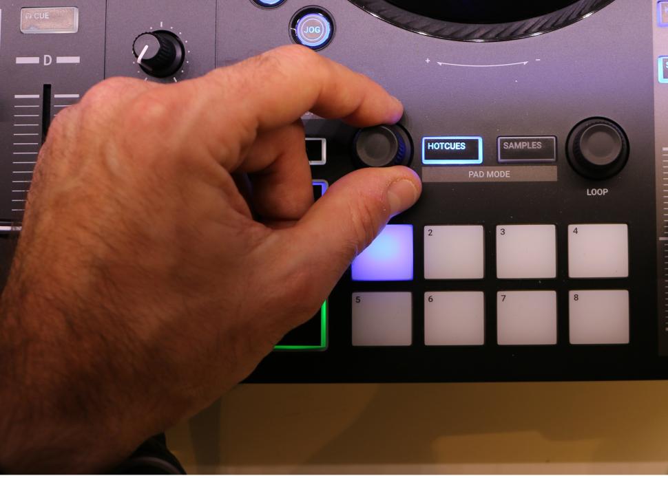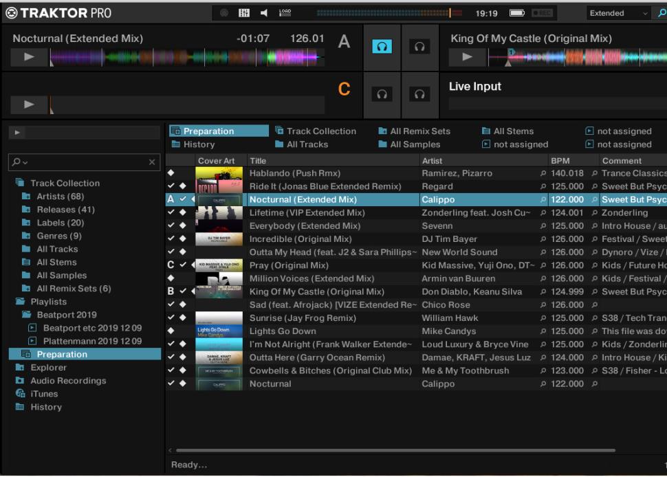 Zum Vorhören halten wir den kleinen Preview-Player-Button gedrückt, was den Titel zunächst ab Anfang auf dem Kopfhörerausgang wiedergibt. Durch nach rechts drehen am Browse-Encoder skippen wir durch den Track und verschaffen uns so einen Schnell-Überblick. Gefällt das Gehörte, legen wir den Titel per Preparation-Taste in die Vorbereitungsliste.