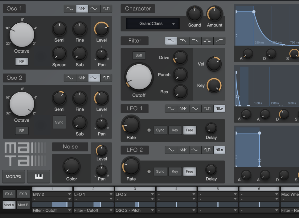 Mit dem Mai Tai erzeugen wir eine Bass- und Hookline-Kombination: Osc 1 mit Sägezahn auf Octave 16‘ und Osc 2 mit Triangle auf Octave 2‘ und Semi +3, schon haben wir eine kräftige Basis. Die Sequenz können Sie programmieren wie im Bild zu sehen oder eine eigene aufnehmen. Übrigens: Das Projekt zu diesem Workshop finden Sie in den Heft-Downloads.
