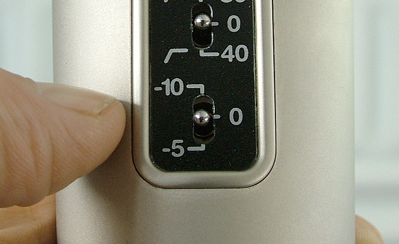 Die meisten Studiomikrofone besitzen ein eingebautes Hochpassfilter, um dumpfe Nebengeräusche wie Trittschall schon vor der Aufnahme herauszufiltern. Meist greift es mit einer Steilheit von 6 dB/Oktave unterhalb der tiefsten Frequenz der menschlichen Stimme, also etwa bei 80 Hz. Bei der Mikrofonierung akustischer Instrumente sollte das Filter auf 40 Hz stehen oder ausgeschaltet bleiben.