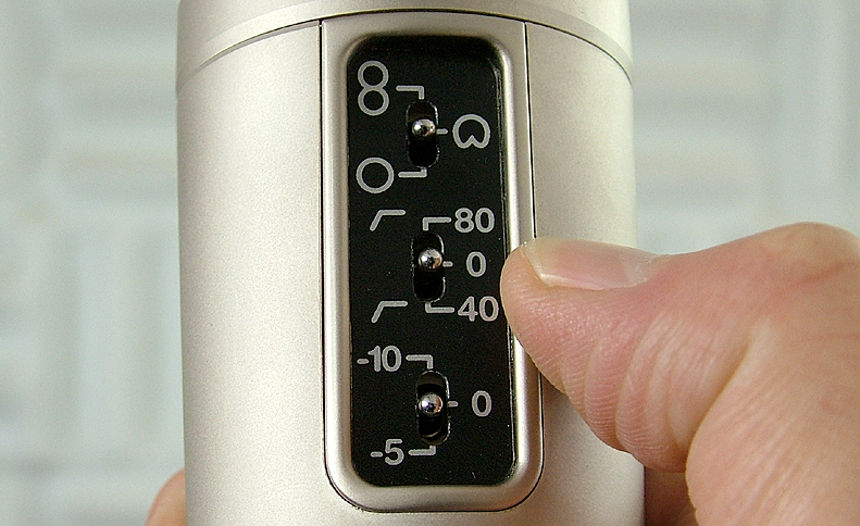 Für besonders laute Signale lässt sich die Empfindlichkeit eines Mikrofons mithilfe eines sogenannten Pad-Schalters reduzieren, um die Übersteuerung des eingebauten Vorverstärkers zu vermeiden. Hier sind Werte zwischen -5 dB bis -20 dB üblich. Die Pad-Funktion sollte bei der Abnahme von Drum-Sets oder Gitarren-Amps aktiviert werden, für Vokalaufnahmen können Sie diese deaktivieren.