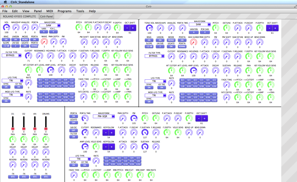Die Open-Source Software CTRLR ist eine Art Zeichenbrett für Bedienoberflächen, deren Regler, Fader und Dropdowns vorher definierte Midi-Daten an bestimmte Ports senden. Hardware Synthesizer lassen sich also 1-zu-1 nachbilden und deren Oberflächen als VST/AU-Plug-ins in jeder DAW nutzen. Darüber hinaus erlaubt CTRLR das Übermitteln von Patches, die dann in den Songdaten der DAW gespeichert werden.