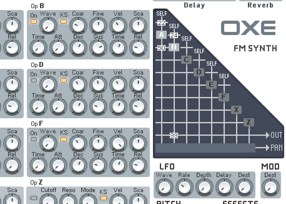 So markant die Bässe sind, so einfach sind sie zu erstellen. Benötigt wird lediglich ein FM-Synth, wie Ableton’s Operator, FM8 von NI oder die Freeware OxeFM. In ersterem lassen sich die Operatoren über so genannte Algorithmen fest verdrahten, im OxeFM wiederum komplett frei per Matrix. Letzteren finden Sie mitsamt Skins in den Heft-Daten finden.