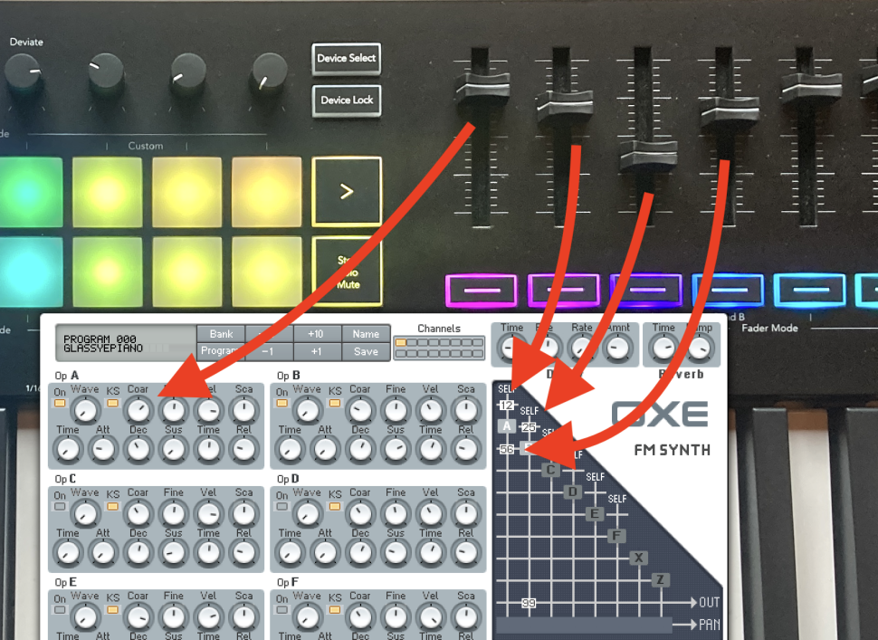 Verbinden Sie diese drei Parameter also mit Reglern Ihres MIDI-Controllers und außerdem noch den Coarse-Regler von Operator A. Je höher Coarse von Op A, desto schriller der Sound. Ab hier beginnt das eigentlich Sounddesign und da Sounds der FM-Synthese schwierig abzusehen sind, helfen die Reglerbelegungen, ein Gefühl für die Auswirkungen zu kriegen.