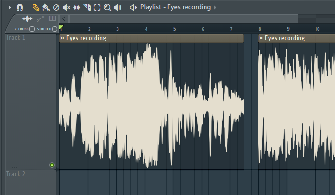 Los geht‘s: Für unseren Workshop haben wir einen Ausschnitt aus einem aktuellen Song von J.Lo gesampelt. Um einen verwertbaren Loop daraus zu erhalten, suchen wir den nächsten Taktanfang, vor dem die Vocals starten. Wie meistens startet dieser auch hier mit einer Kick. Direkt vor der Kick schneiden wir die Aufnahme und löschen den vorigen Part. Selbiges am Ende des Teils, den wir verwenden wollen.