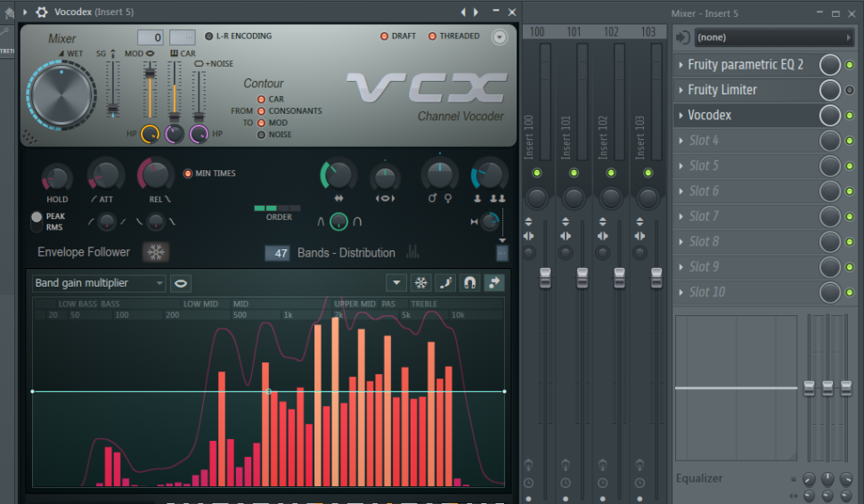 … aber der Vocodex (oder ein Vocoder Ihrer Wahl) ist dankbar für die deutliche Audioquelle. Laden Sie den Effekt hinter den EQ und suchen sich ein Preset, das Ihnen gefällt. Mit dem Vocoder können Sie die Vocals je nach Preset per Klick auf die passende Tonlage hieven. Tipp: Geben Sie Ihrem Remix noch mehr eigenen Touch, in dem Sie die Vocals kleinteiliger schneiden und die Worte bzw. Phrasen umsortieren.
