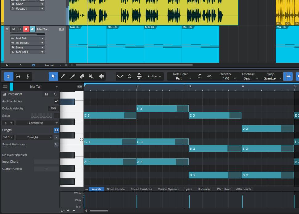 Jetzt kannst du den Synthesizer mit deinem MIDI-Keyboard spielen oder eine Sequenz programmieren. Probiere einmal Akkorde in verschiedenen Lagen und auch verschiedene Wellenformen und Oszillatoreinstellungen bei Mai Tai aus. Mit einem solchen polyphonen Preset lassen sich markante Background-Harmonien wie in „The Middle“ von Zedd erzielen.