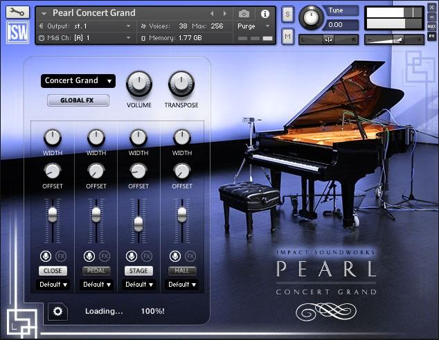 Mit Pearl Concert Grand unternimmt Impact Soundworks den Versuch, den Klang des Modells C7, des Flagschiffs der Serie, detailgetreu einzufangen. Zu diesem Zweck wurde das Instrument in vier Mikrofonperspektiven (Close, Pedal, Stage, Hall) in einem Konzertsaal aufgenommen. Das eindrucksvolle Ergebnis ist eine 27 GB große Library mit über 14.000 Samples in 24-Bit-Qualität. In 16-Bit-Qualität nimmt die Bibliothek einen Speicherplatz von 12 GB ein. Das Instrument wurde sowohl mit und ohne gehaltenem Sustain-Pedal eingefangen. Für einen enormen Realismus sorgen acht Dynamikstufen und zwei Alternativ-Samples pro Note sowie echte Release- und Pedal-Geräusche. Es ist bereits ein Update mit Soft- und Half-Pedal-Samples in Planung. Für weniger performante Computer stehen Light-Patches bereit.