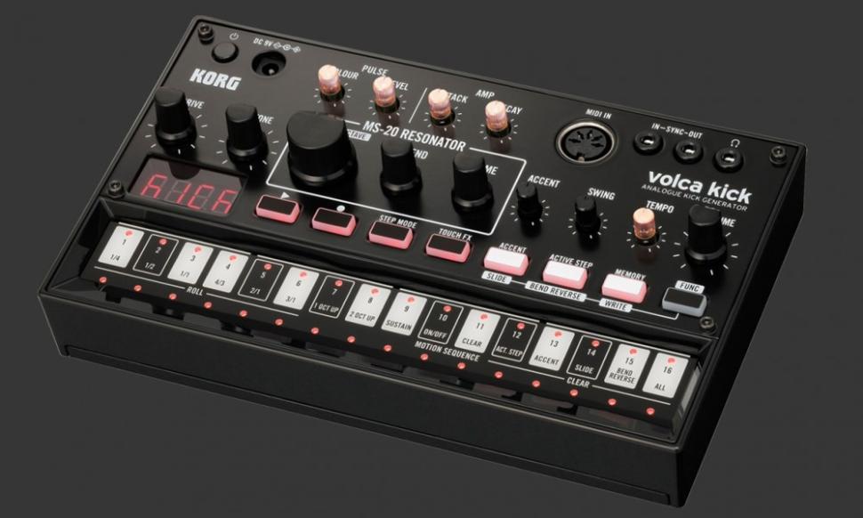 Praxistest Der Volca Kick braucht etwas länger zum Hochfahren als seine Geschwister. Wir vermuten, dass in dieser Zeit die analoge Klangerzeugung gestimmt wird. Nutzen Sie die Pause, um Ihre Boxen herunterzudrehen und die Nachbarn zu warnen. Denn was anschließend aus den angeschlossenen Lautsprechern tönt, ist pure analoge Power! Das MS-20-Filter selbst macht resonierend schon ordentlich Dampf, in Verbindung mit etwas Sättigung durch den analogen Verzerrer wackeln buchstäblich die Wände. Die sehr schnelle Pitch-Hüllkurve sorgt zusammen mit dem Pulse-Generator für knackigen Attack. Die aggressiven und brutalen Kicks machen den Volca Kick zu einer nahezu konkurrenzlosen Empfehlung für härtere Musikstile wie Industrial, EBM und Hardcore/Gabba. Klassische Technokicks in Richtung TR-909 sind aber auch möglich. Überraschend gut schlägt sich der Volca Kick auch als analoger Subbass. Insbesondere Plug-ins und Samples fehlt gefühlt oftmals ein wenig Tiefe, Fundament und Wärme. Im Test haben wir diverse Klangerzeuger mit dem Volca Kick gedoppelt und konnten auf Anhieb einen runden, warmen und ungezähmten Analogsound erzielen. Da der Volca Kick auch über MIDI tonal spielbar ist, ist eine Kopplung problemlos möglich. Selbst neu-analoge Hardware-Synthesizer wie die Bassstation II profitierten in unserem Test vom zusätzlichen Bass und Punch des Volca Kick.