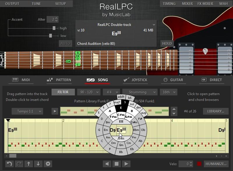 Das virtuelle Instrument bietet sechs Performance-Modi für Akkorde, Riffs, Rhythmen und Melodien. Auf dem MIDI-Keyboard gespielte Akkorde werden automatisch in gitarrentypische Voicings übersetzt. Ein Highlight ist der Song Track, in dem Sie aus 1250 Rhythmusmustern sowie den Akkorden Ihrer Wahl lebendige Gitarrenbegleitungen und -grooves erzeugen können. Klasse: Mit dem auf dem Quintenzirkel basierenden Chord Selector ist das Erstellen mitreißender Akkordprogressionen ein Kinderspiel. Fertige Songs lassen sich als MIDI-Datei exportieren. Wir hätten uns weitere Rhythmus-Patterns für moderne Musikstile und eine skalierbare Bedienoberfläche gewünscht.