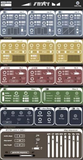 Synister ist ein von Studenten der TU Berlin entwickelter virtuell-analoger Synthesizer. Es handelt sich um Open-Source-Software, die stand-alone oder als VST/AU-Plug-in auf Mac und PC läuft. Die Oberfläche ist einfach und übersichtlich gehalten und erinnert mit ihren simplen stilisierten Bedienelementen an eine bekannte Sequenzersoftware aus derselben Stadt. Ungewöhnlich für ein Synthesizer-Plug-in ist die Nutzeroberfläche mit untereinander angeordneten und einzeln ausklappbaren Tabs für die verschiedenen Sektionen der Klangerzeugung wie Oszillatoren, Hüllkurven und Filter. Wenn Sie z.B. die Filtereinstellungen bearbeiten, machen Sie nur Filter, Hüllkurven und LFOs sichtbar und lassen den Rest eingeklappt. Ein interessantes Bedienkonzept, das im Test durchaus zu gefallen wusste. Die Klangerzeugung ist klassisch-subtraktiv aufgebaut. Drei Oszillatoren bieten jeweils die Wellenformen Rechteck, Sägezahn und Rauschen. Das Ergebnis wandert durch zwei Multimodefilter mit Resonanz. Zur Modulation stehen jeweils drei Hüllkurven und LFOs zur Verfügung. Die Modulationsmöglichkeiten sind das Highlight dieses Synthesizers. Fast jedem klangrelevanten Parameter lassen sich eine oder mehrere Modulationsquellen zuweisen. Vier eingebaute Effekte veredeln oder verfremden den Klang. Ein einfach zu programmierender 8-Step-Sequenzer sorgt für weitere Bewegung.