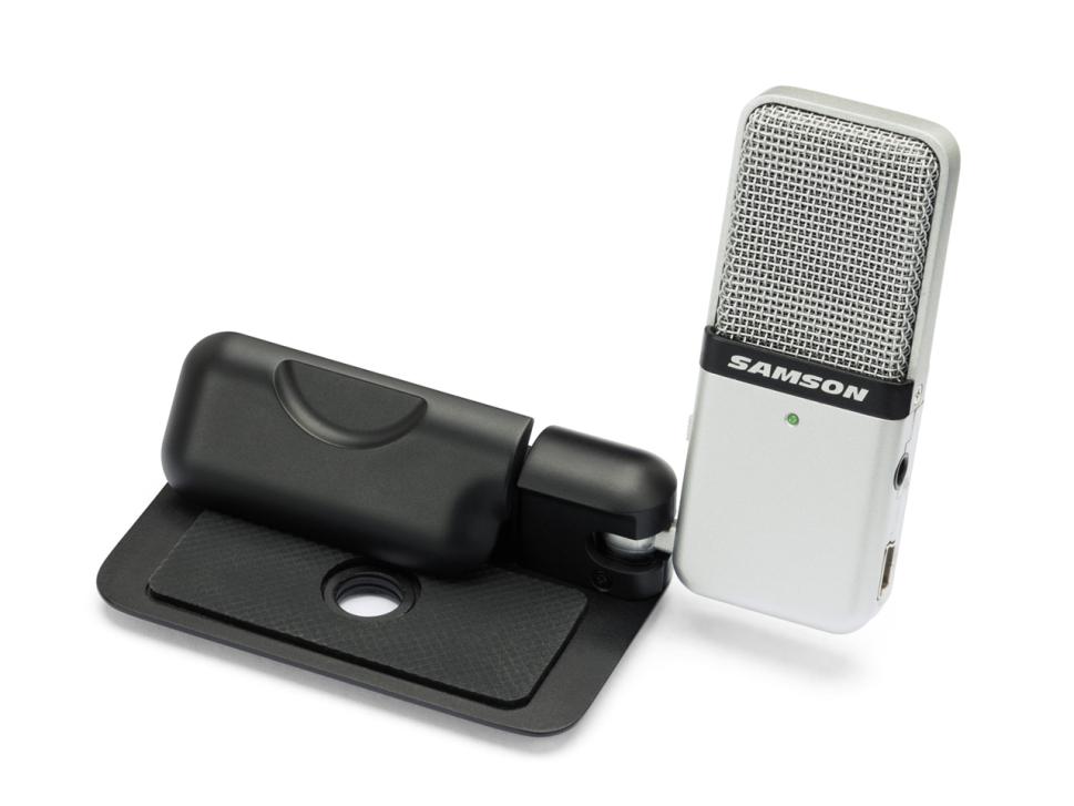 Die in Laptops integrierten Minimikrofone sind klanglich oft von zweifelhafter Qualität, was sicher jeder bestätigen kann, der einmal versucht hat, seinen Podcast am Laptop einzusprechen. Dass es auch anders geht, zeigt Samson mit dem Go Mic USB, ein hochwertiges Mikrofon mit schaltbarer Richtcharakteristik und Zehn-Millimeter-Kapsel. Das Mikro wird durch eine schlaue Faltmechanik und Kugelgelenk einfach auf das Display aufgesteckt, kann aber auch stehend und, dank Gewinde, gar mit einem Stativ verwendet werden.