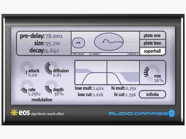 Wenn die DSP-Bastler von Audio Damage ein neues Plug-in auf die Welt loslassen, heißt es Ohren spitzen! Schließlich genießen die innovativen Kreativeffekte und Soundzerstörer der Softwareschmiede vor allem unter Klangfricklern einen hervorragenden Ruf. Zwar gehören Hallprozessoren nicht unbedingt zu den abgefahrensten Klangmanipulatoren unter der künstlichen TFT-Sonne des virtuellen Studios, jedoch wäre Audio Damage auch nicht Audio Damage, wenn sich ihre neue Kreation EOS nicht auch hervorragend für kreative Klangbearbeitungen eignen würde.