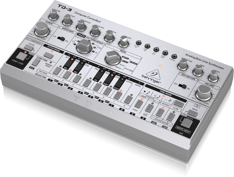Die Roland TB-303 wurde 1982 als virtueller E-Bassist zur Unterstützung für Gitarristen auf den Markt gebracht. Die charakteristischen Sequenzen mit Slide, Accent und kreischender Resonanz sind nicht nur essentieller Bestandteil jeglicher Acid-Stile, sondern haben die gesamte Techno-Bewegung maßgeblich beeinflusst. Es verwundert daher auch wenig, dass sich auch Uli Behringer der kleinen Kultkiste angenommen hat, schließlich ist vor seinen Nachbauten kein analoger Klassiker sicher. Ebenfalls nicht überraschend ist, dass die Behringer TD-3 mit einem Straßenpreis von unter 150 Euro deutlich günstiger ist als alle anderen Nachbauten, vom Gebrauchtmarktpreis des Originals ganz zu schweigen.